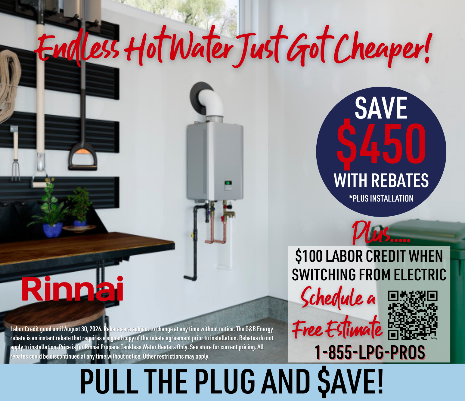 Starting at $295 after rebates. Speak with one of our tankless experts to determine your rebate amount.